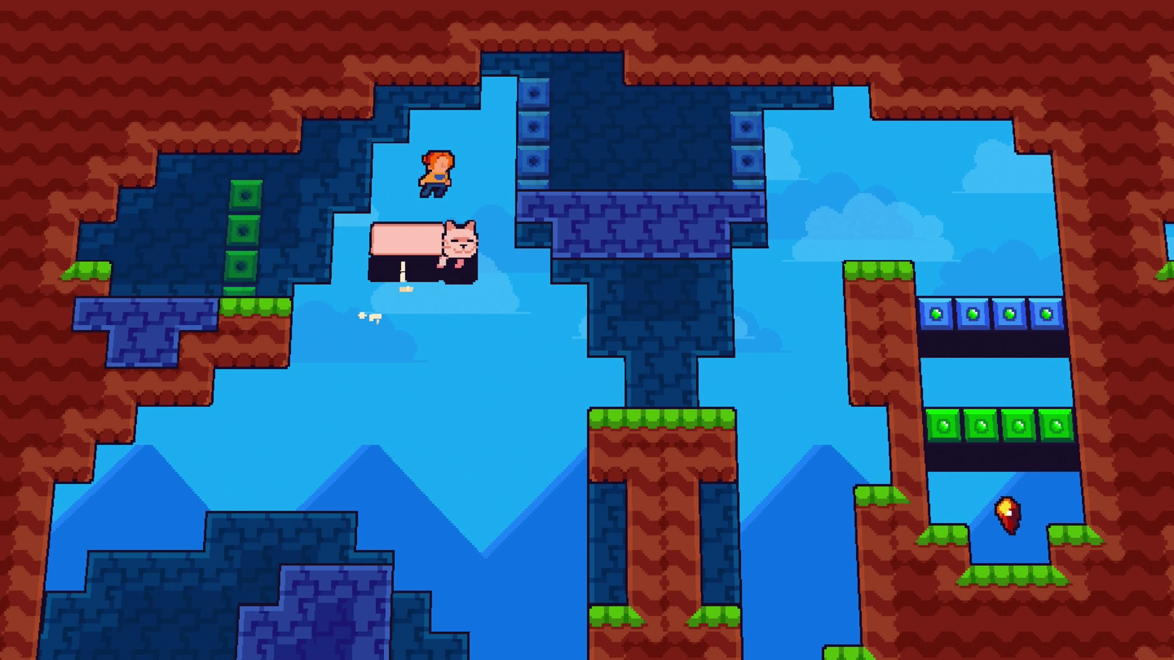 Run and leap through increasingly complex stages, freezing time and shifting perspectives to maneuver your cat friend around the environment to push crates, activate switches or create improvised platforms using its long furry body! Are you clever enough to clear all the challenges?
