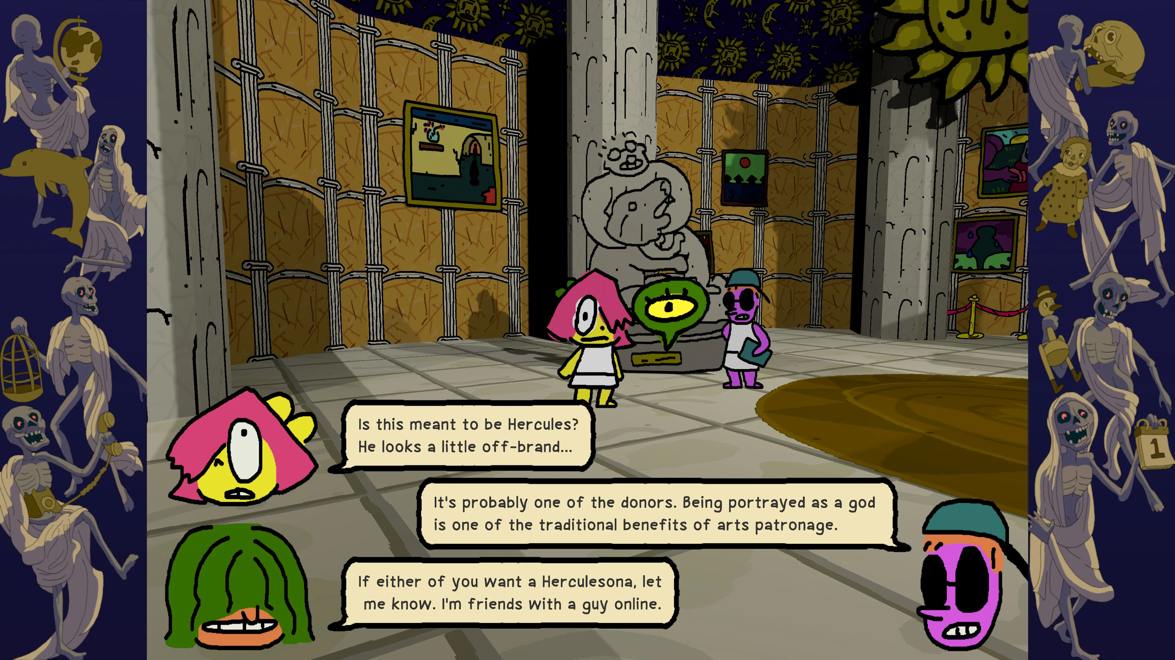 Join protagonist BB as she collects material for her zines in a mysterious world of drinky birds, secret rooms, dream resorts, waterparks, bort dolls, immersive theater, beachfront novelty shirts, police men, serial killers, art freeports and unorthodox medical treatment. Nobody's getting out of here alive!