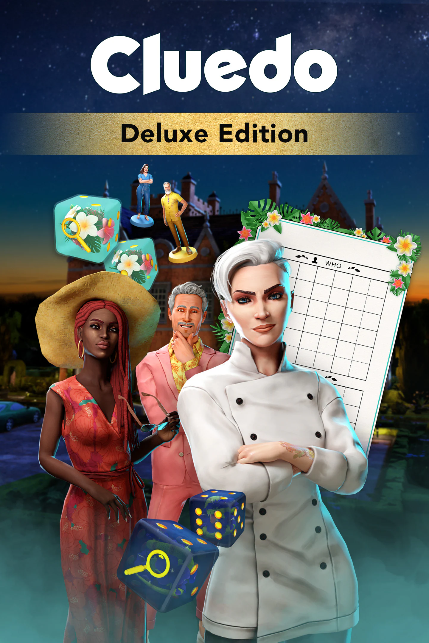 - The Cluedo Base Game: Follow the original suspects, Miss Scarlett, Colonel Mustard, Chef White, Professor Plum, Solicitor Peacock and Mayor Green, through the iconic Tudor Mansion, unravelling the mystery as you go. Play by the original rules, or try the new Ultimate Detective game format and face your suspects in a direct interrogation! Solve the crime your way and find out who did it, with what weapon, where!