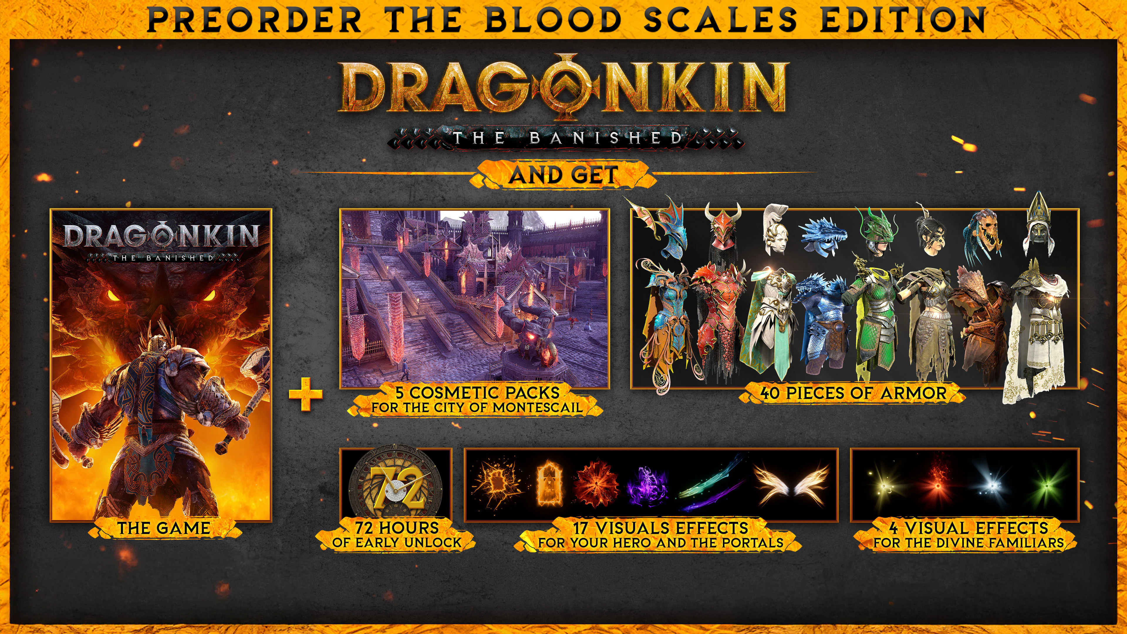 Pre-order and put an end to the draconic corruption with the Blood Scales Edition of Dragonkin: The Banished and get: