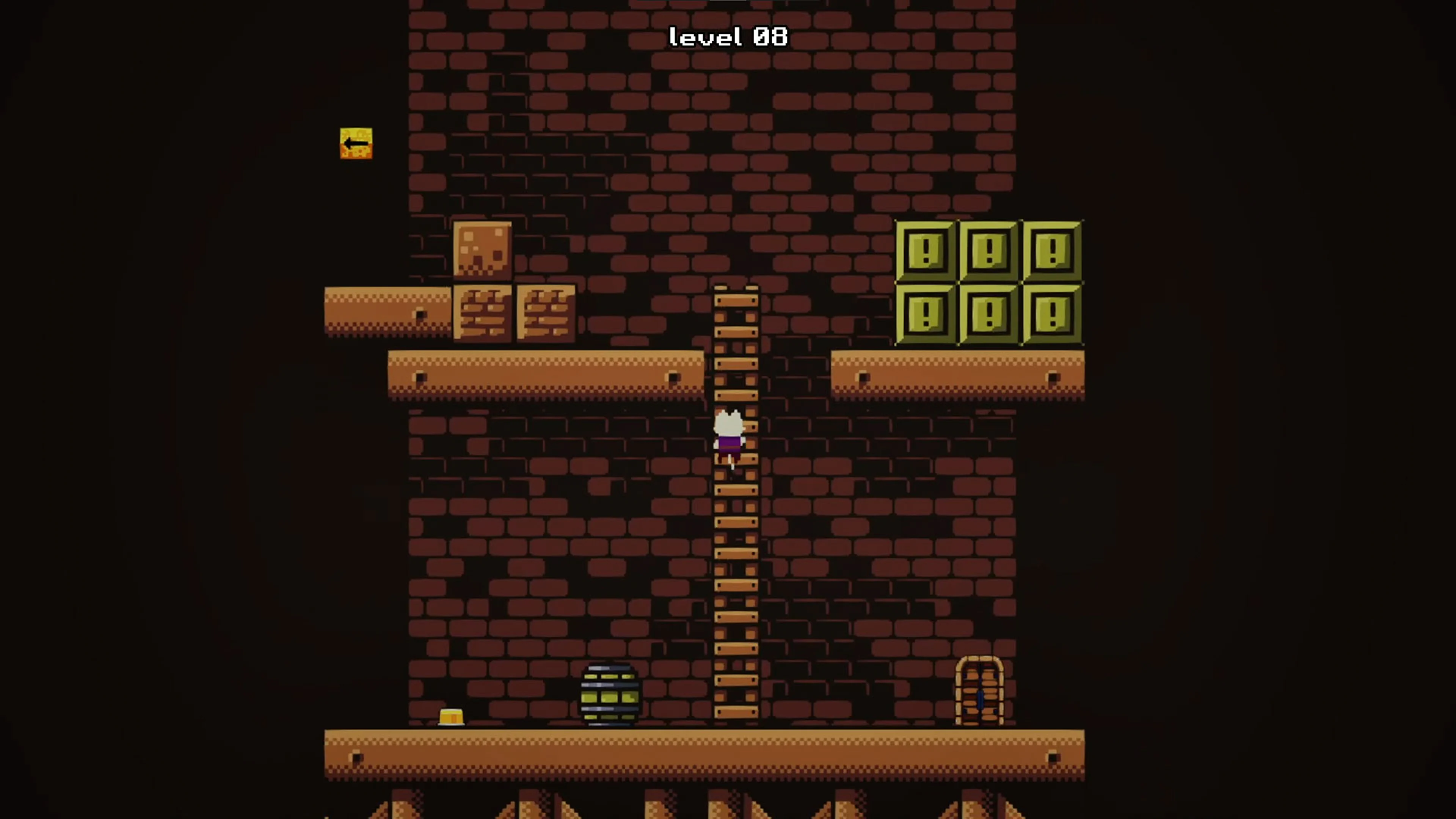 In FlipCat, the protagonist, a white cat wearing a purple shirt, explores mysterious worlds filled with obstacles and secrets. By colliding with yellow blocks, players can rotate the world 90 degrees, revealing new paths and puzzle solutions. Along the way, you will encounter barrels, trampolines, portals, moving platforms, and color coded switches, while avoiding spikes, cannons, and fire traps.
