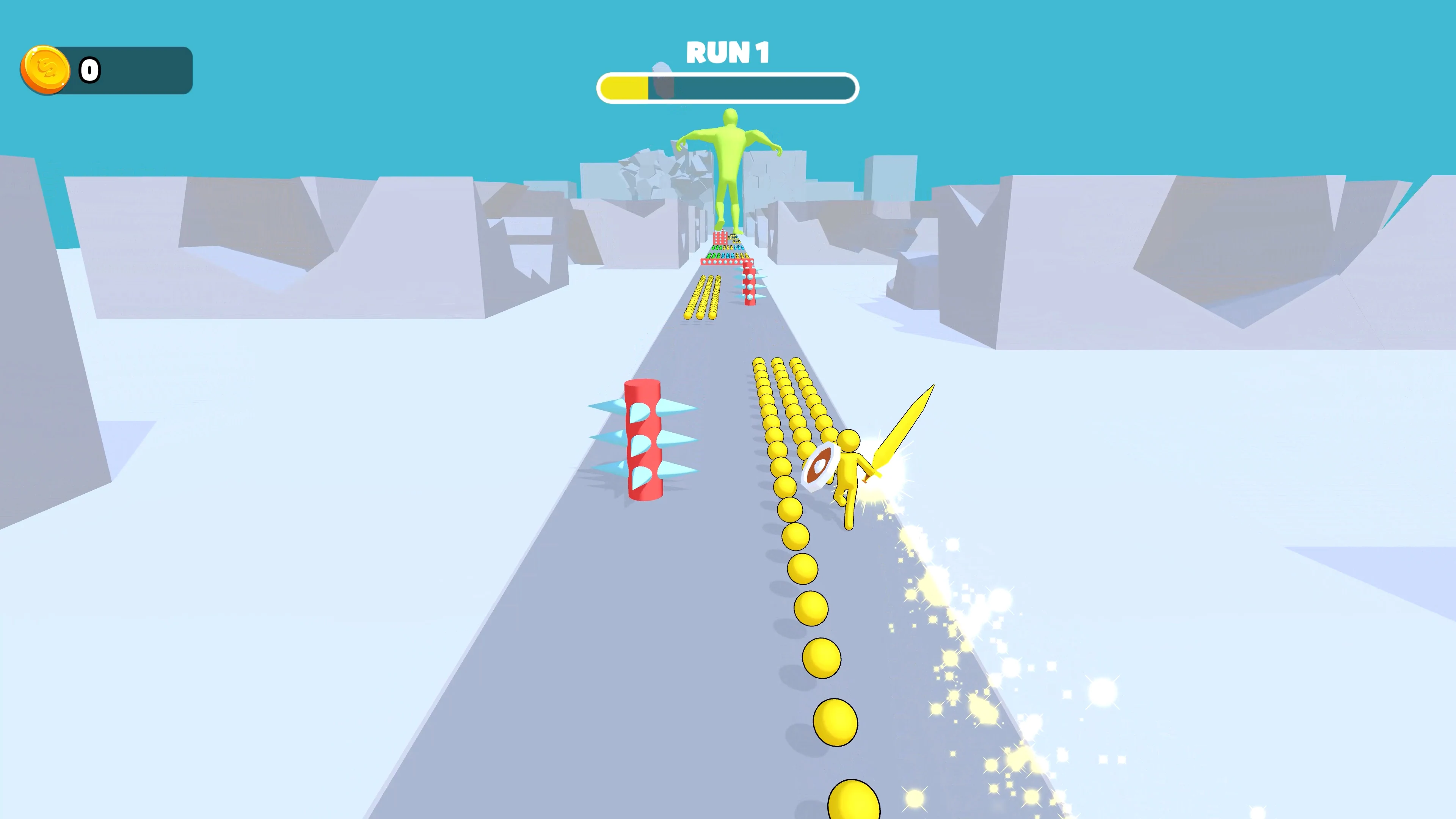 Race through a collapsing city in a desperate pursuit of a towering, rampaging beast. Every step brings you closer to the ultimate showdown as buildings crumble and lava surges beneath your feet. Collect color-coded power-ups to grow your blade and boost your power, slicing through obstacles and surging forward with precision timing and quick reflexes.