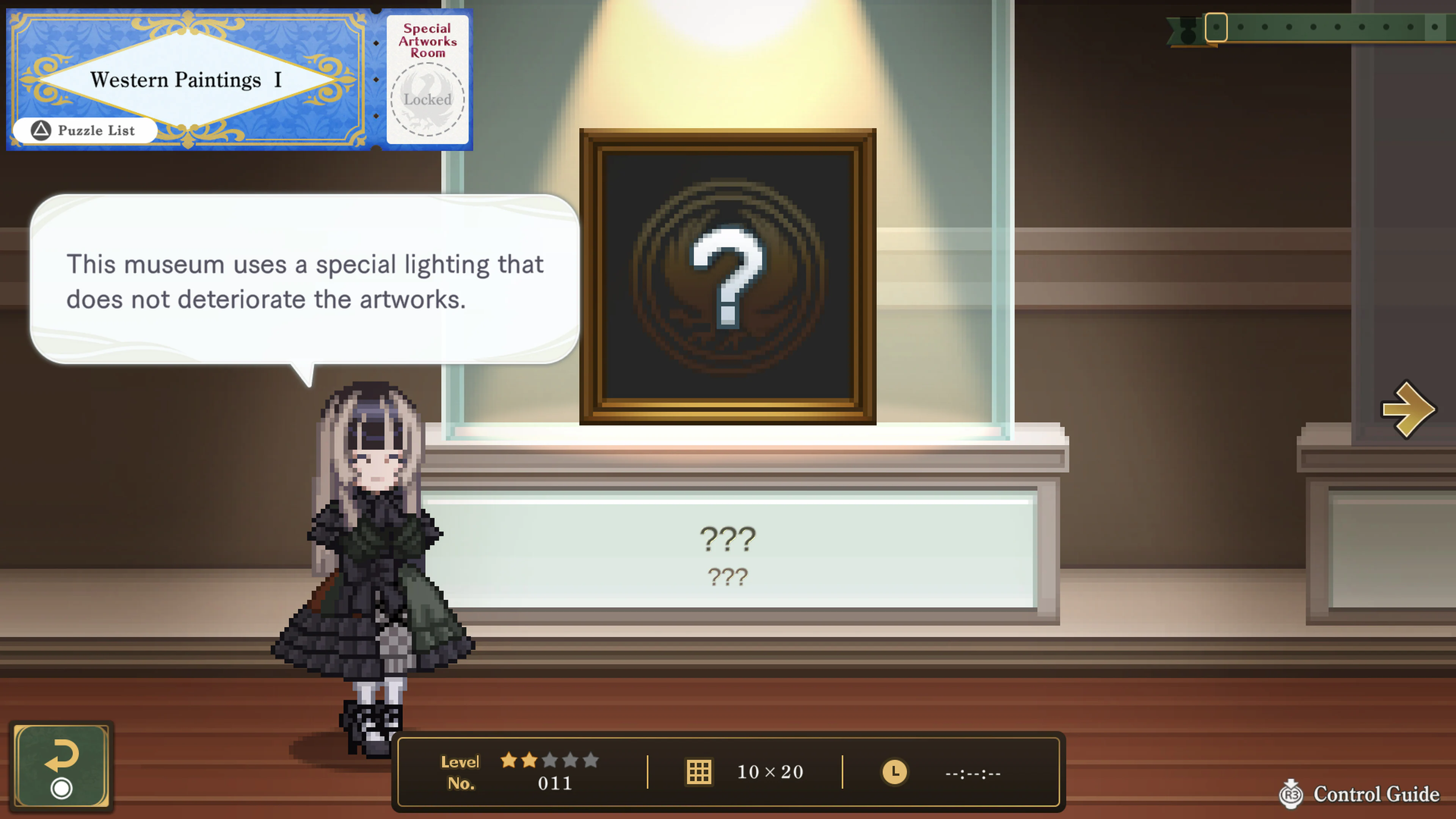 Join her as you tour the museum, solve puzzles, and work towards completing the "Dot Art" throughout the museum.