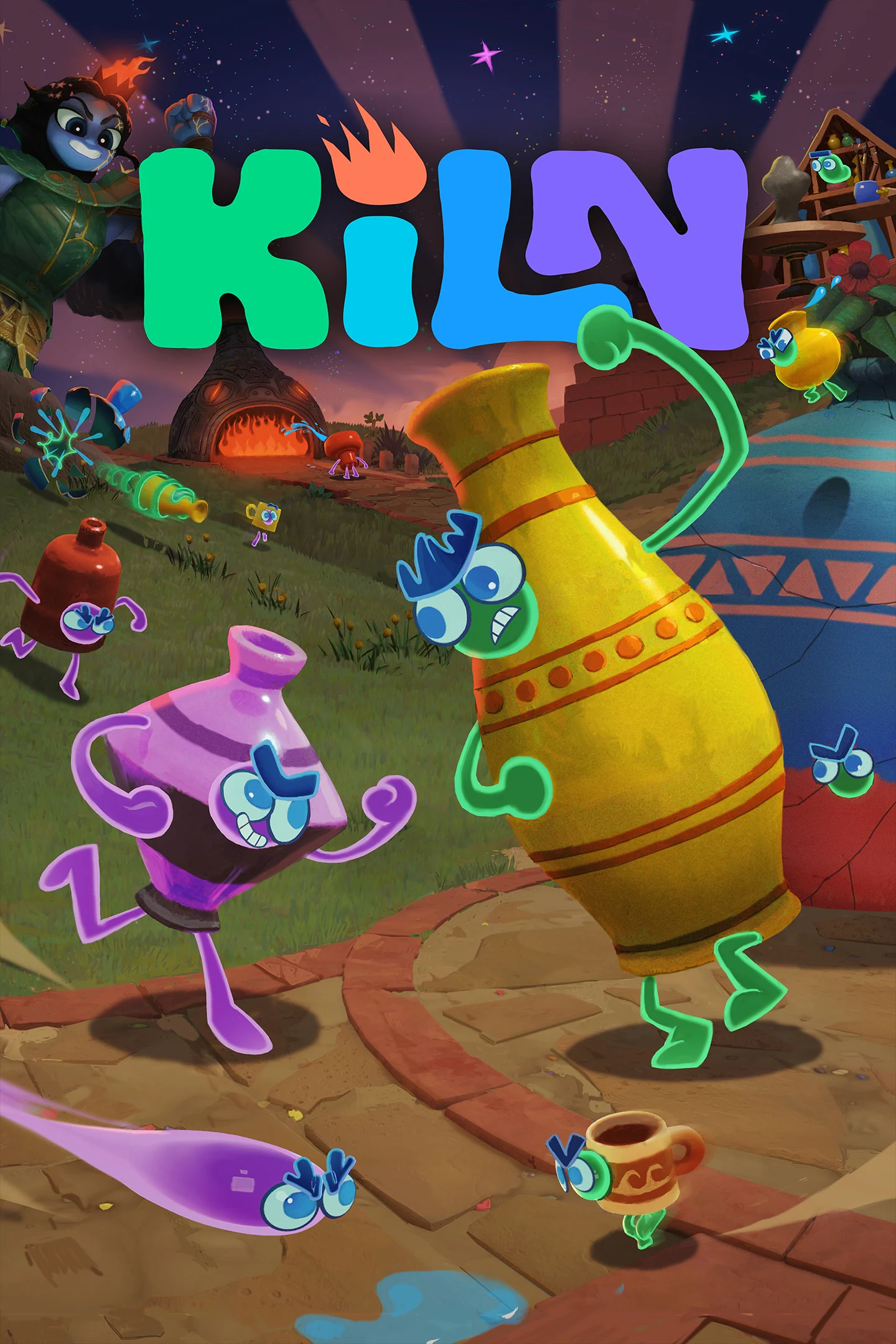 Double Fine Productions presents Kiln, a pottery power-fantasy that celebrates both Creativity and Destruction: the pleasure that comes from both making beautiful things, and then smashing those things to smithereens. Create your pot, grab your friends, and join a team of colorful spirits who face off against one another in online arenas, where the ceramic creations you sculpt on a pottery wheel become the bodies you bring into battle.