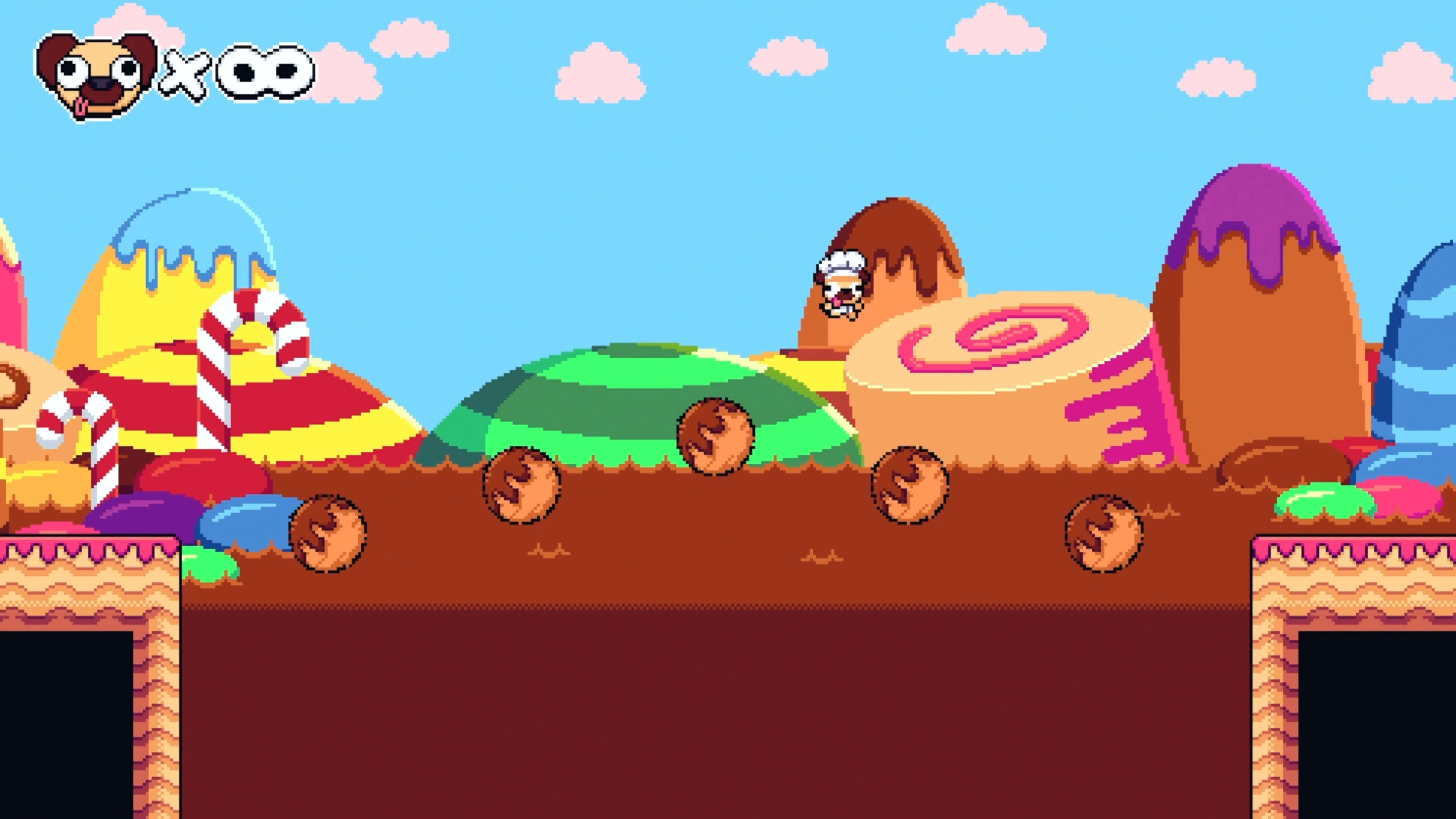Keep the pup moving as quickly as possible by watching your stamina meter! You’ll have to navigate worlds of toys, sweets, sunny beaches and more, each stage bringing new and wondrous mechanics that can help or hinder you. Watch Pogui don different outfits like a chef’s hat or space suit along the way, further maximizing his cuteness.