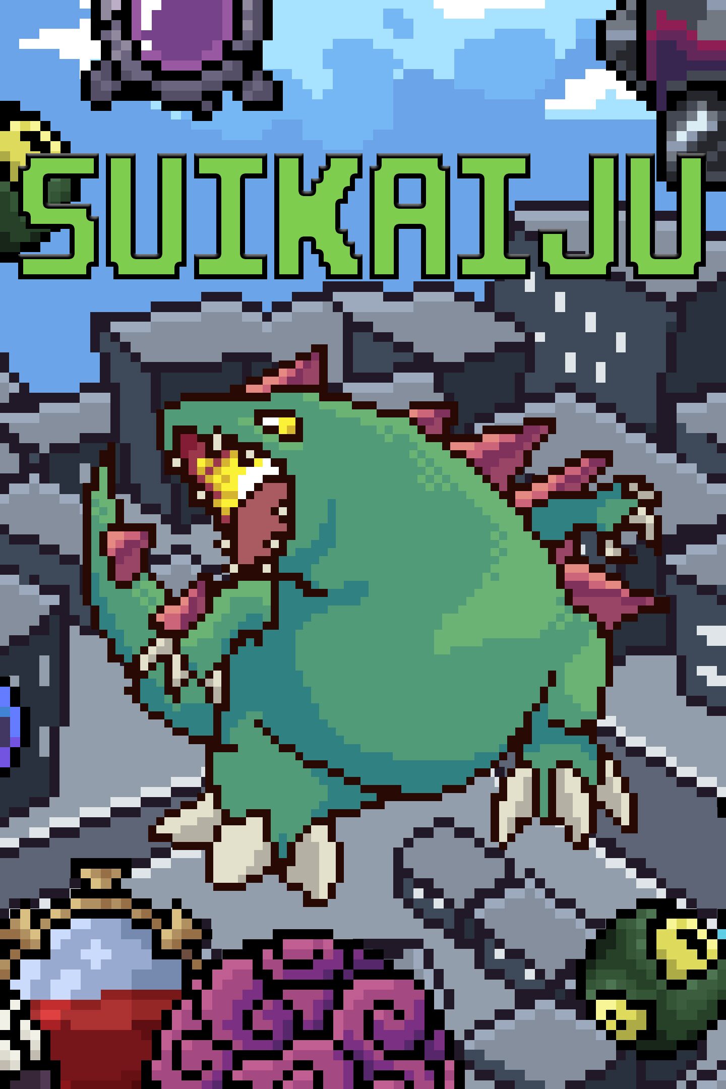 Suikaiju is a game inspired by Suika game (a.k.a Watermellon Game), a puzzle game of merging balls into bigger ones and trying to get the highest score possible. Aside from the score, you will start the game with a small monster egg. By merging the balls known as Kaiju Cores, your can hatch the egg and make your monster grow, until it reaches it's Kaiju Form. Kaiju is a Japanese term that is commonly associated with media involving giant monsters and that's the main theme of the game. Grow your little monster until it's as big a a skycraper!
