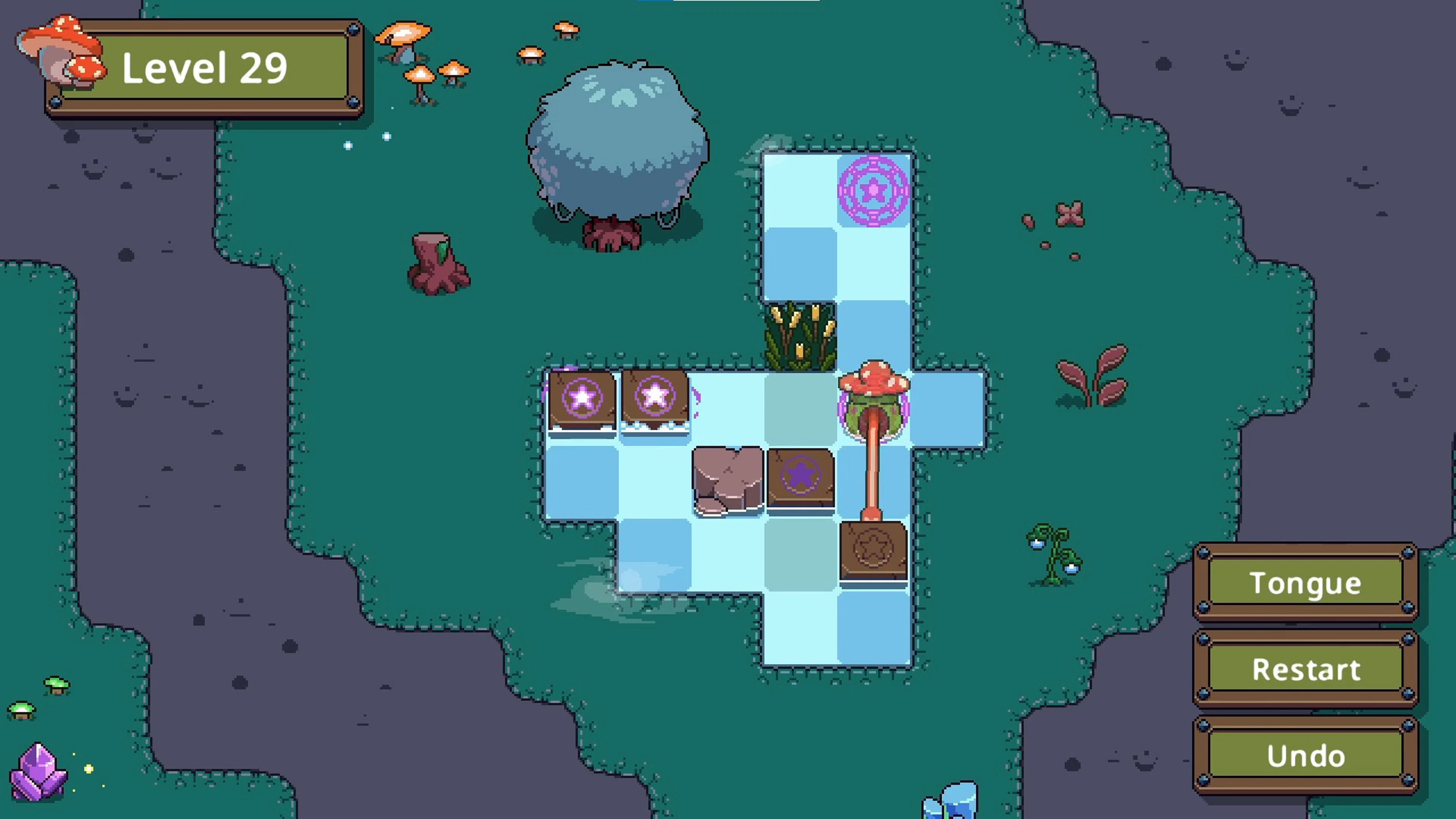 Mystic tongue: Pull blocks with your tongue if the path is clear — but be careful, one mistake and you’re stuck!