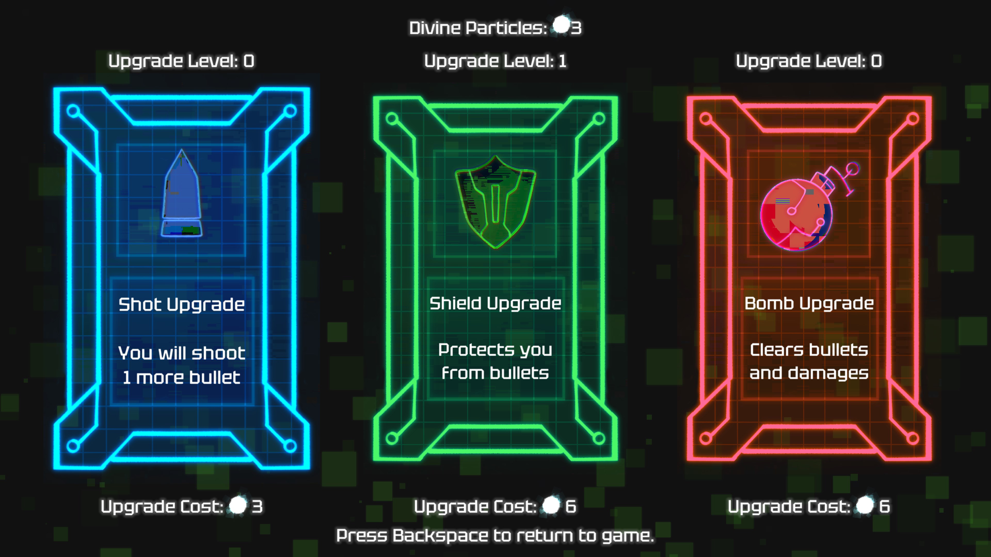 The game is a Boss Rush Bullet Hell shooter with upgrades. Fight 10 different bosses and try to defeat a secret boss for better ending!