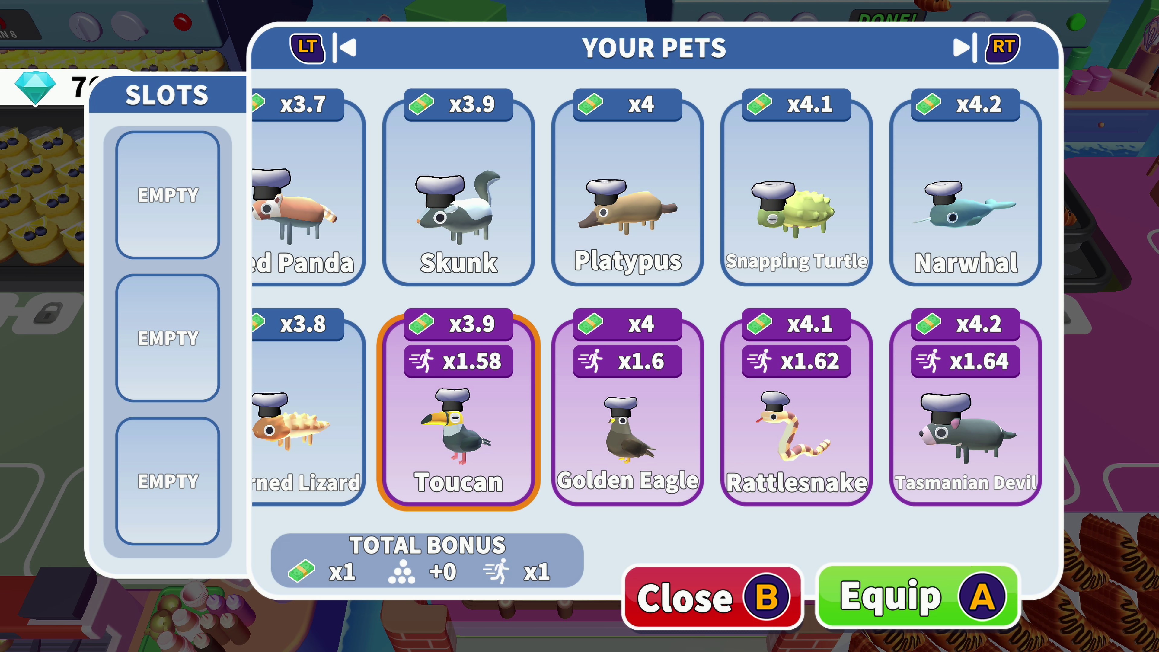 - Use your diamonds to unlock over 90 adorable animals that will increase your movement speed, capacity and the cash you collect!