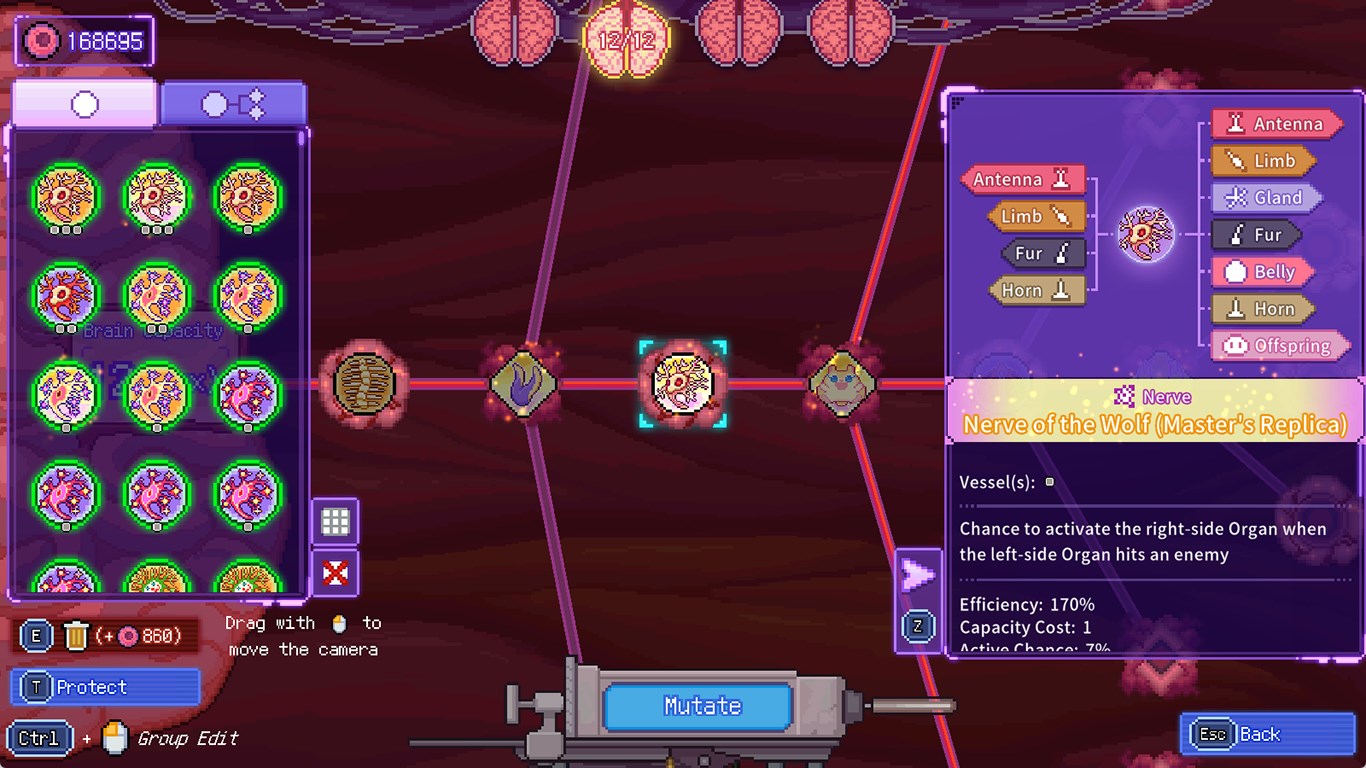 The game includes hundreds of organs with different functions. Each organ can also be mutated to obtain additional affixes which can further generate more unpredictable changes.