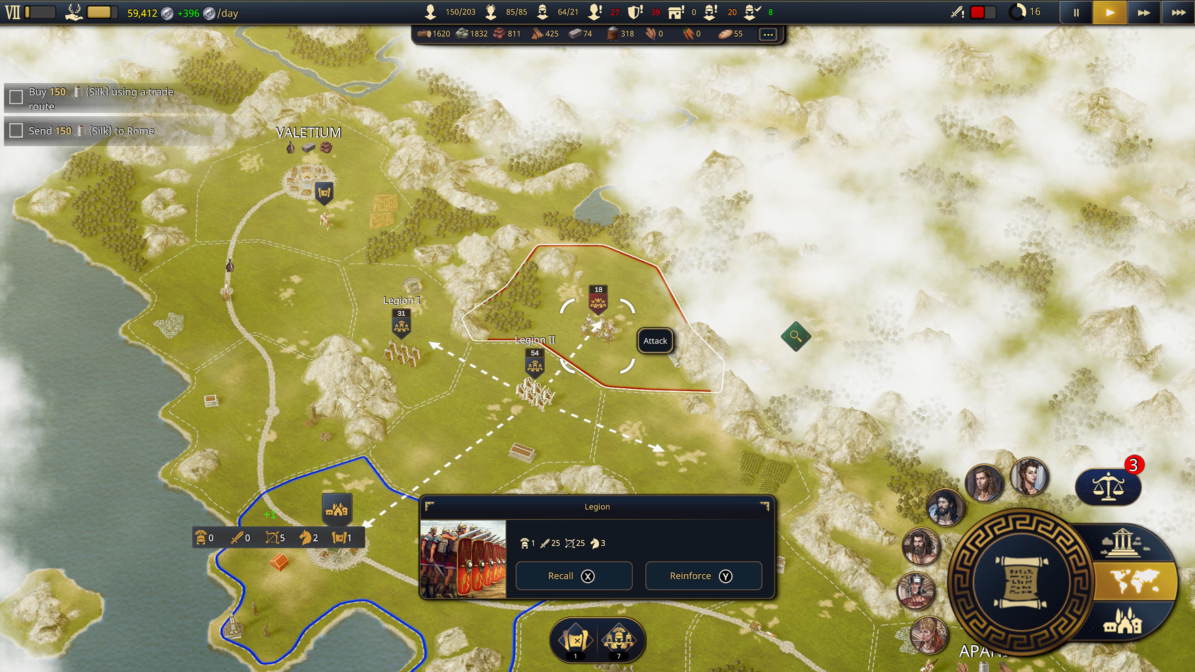 Expand. Explore the world map, free villages under siege and experience the power of the most advanced armies of the era: the legion, engaging in tactical auto-battle combat. Once the territory is secured, you can set trade routes, import exotic resources and scale up your economy. Send out your explorers to find a collection of mythological objects that will help you in your expansion and complete missions for the Senate.