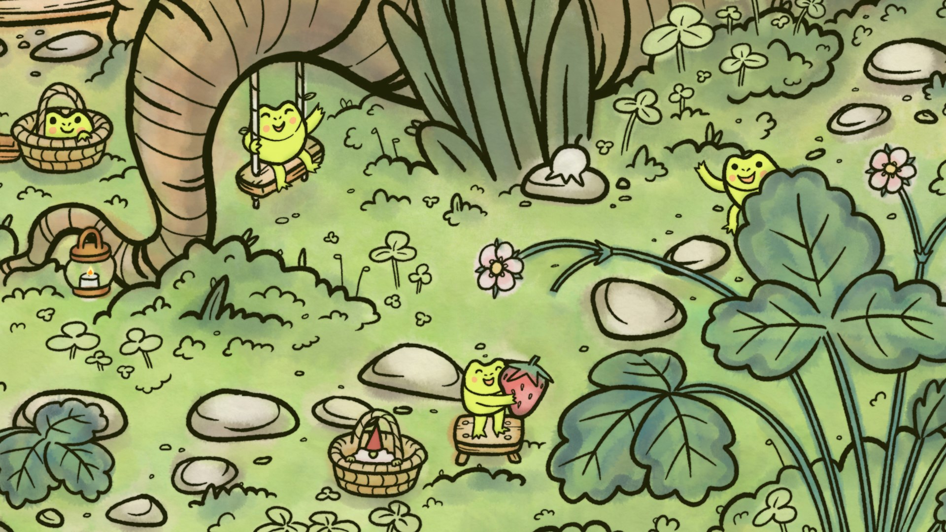 Насладитесь приятными анимациям и звуками, умиротворяющей музыкой и забавным взаимодействиям — например, помогите маленькой лягушке собирать клубнику. Find My Frogs — это проект, созданный с большим энтузиазмом дуэтом художников, который подарит вам сладкую минутку безмятежности!