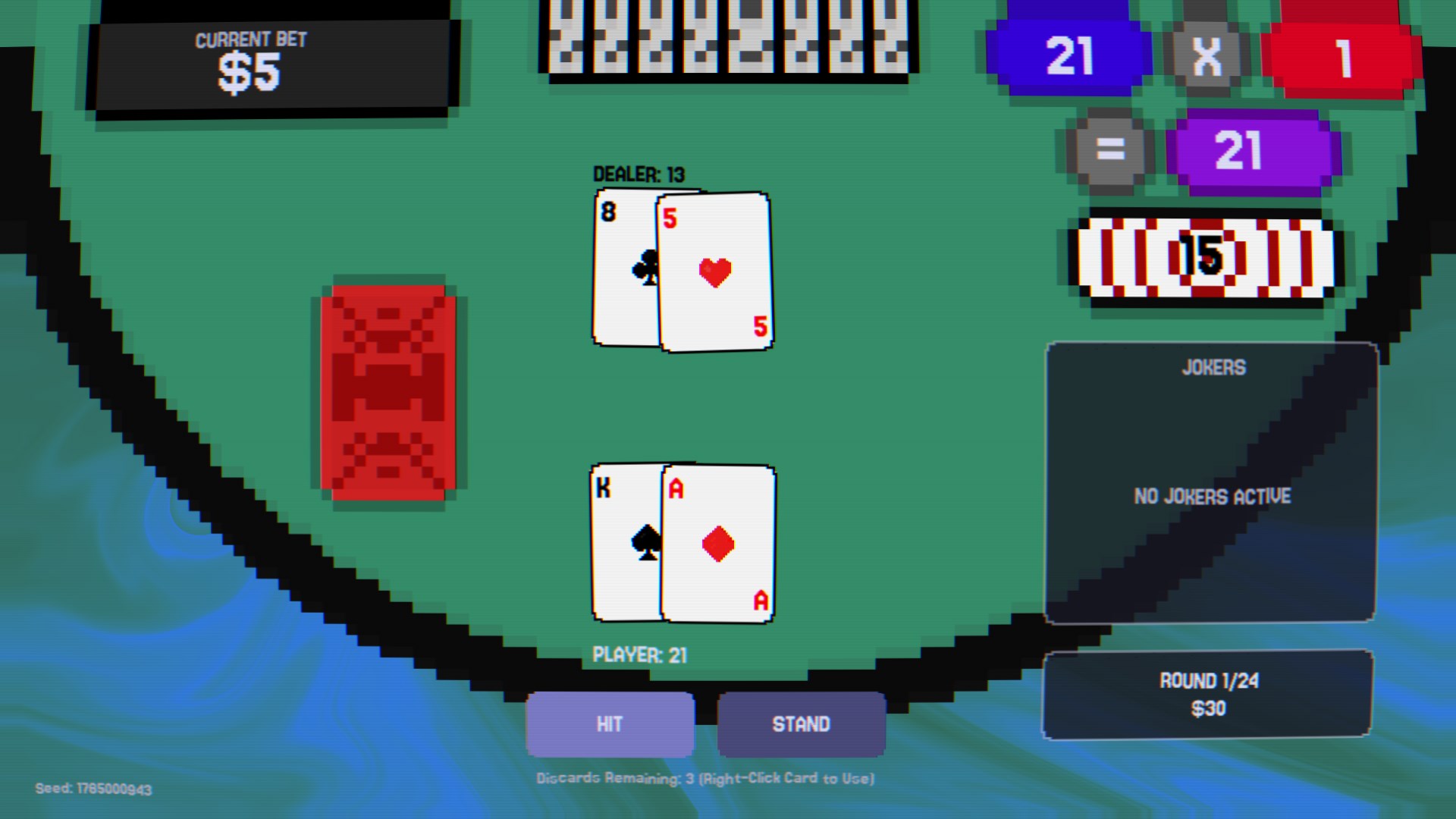 With seeded runs, deep strategic discards, and a retro-neon aesthetic, every hand is a fresh chance to find the ultimate combo. Do you have the strategy to outsmart the deck, or will you go bust trying?