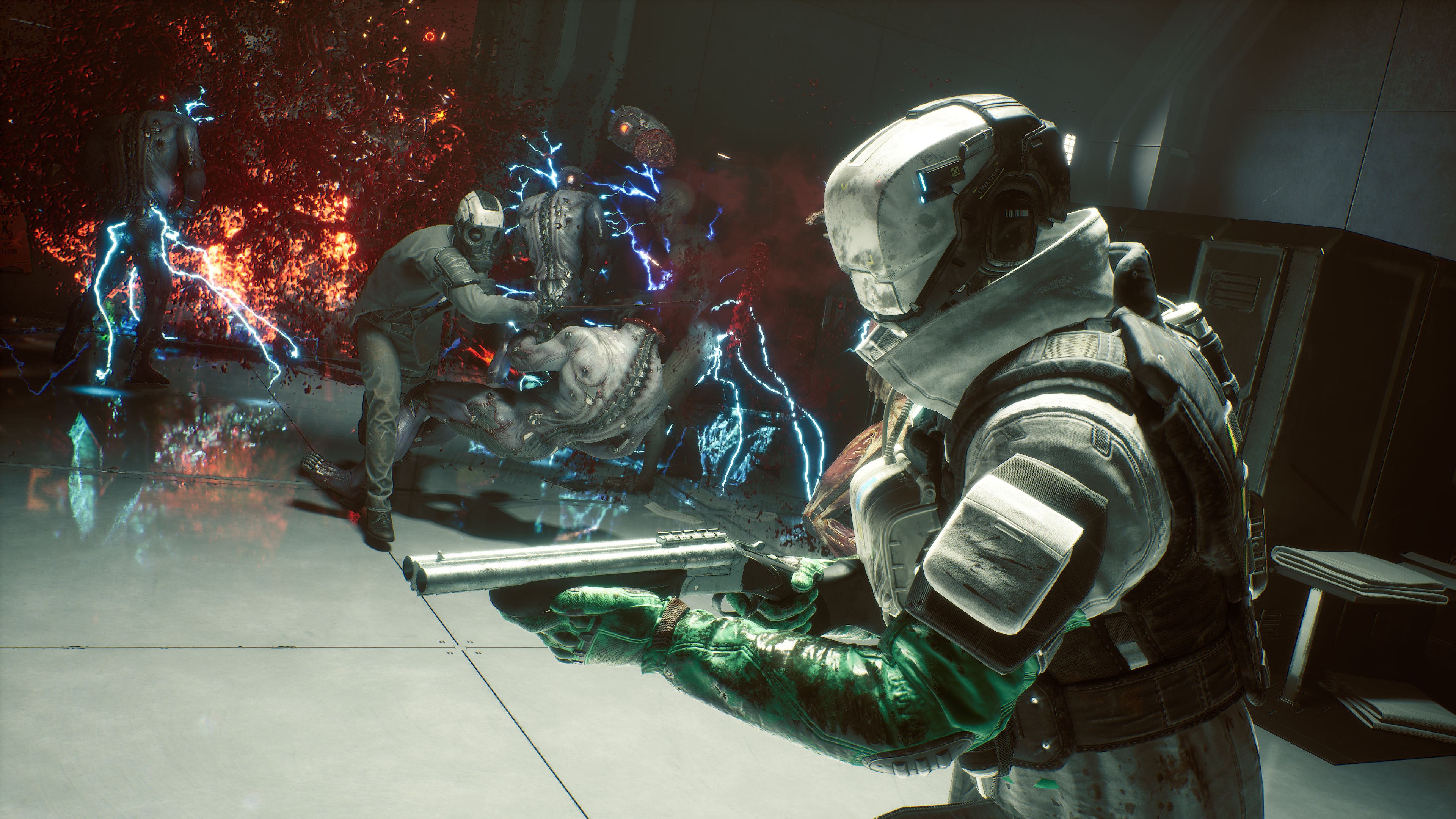Drop into a variety of treacherous hot zones where you’ll have to contain the further spread of the Outbreak. Thankfully, you can use the environment to your advantage by activating turrets, fans, and other devastating traps.