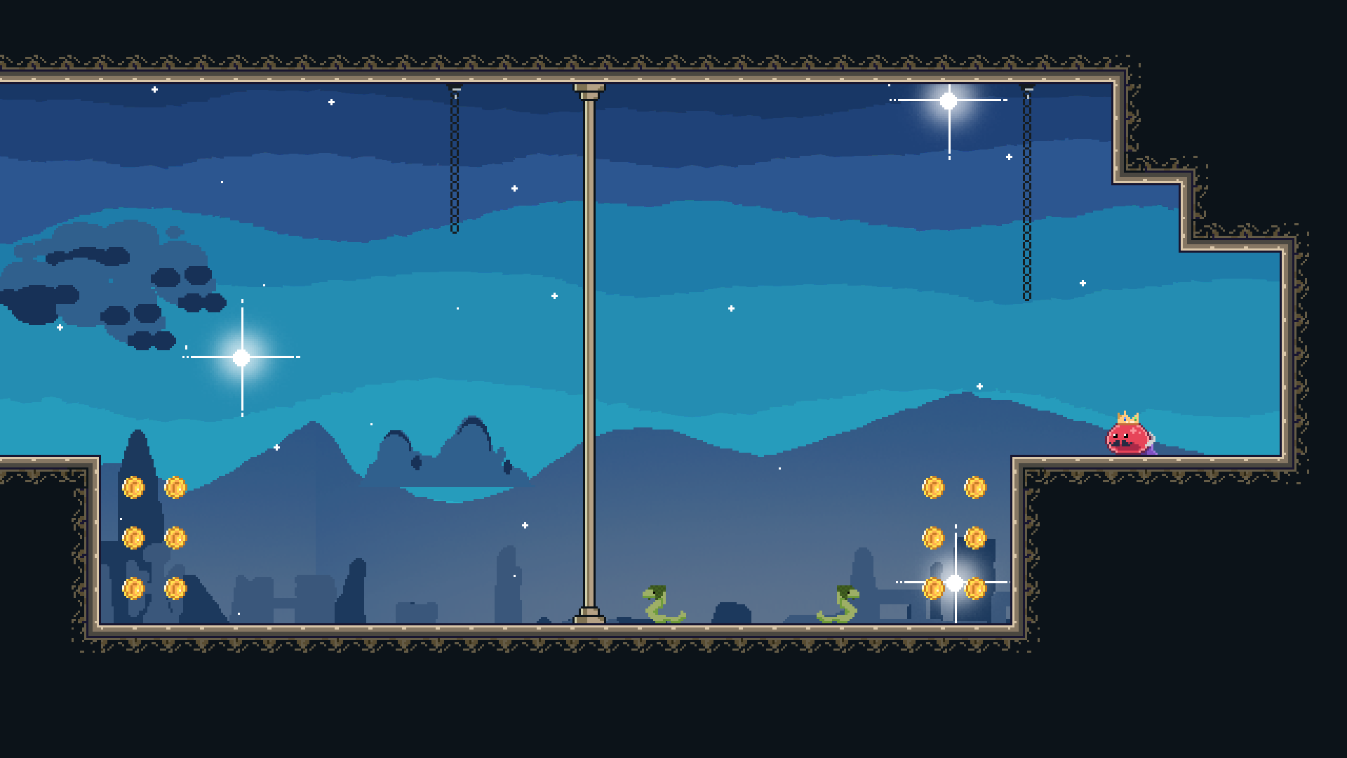 King Slime in Cashtle is a precision 2D platformer where you play as the ruler of the slime kingdom on a very important mission: collect every last tax coin left behind in your own castle. Jump, dodge, and maneuver through dangerous castle biomes filled with traps, challenges, and tight platforming sequences.