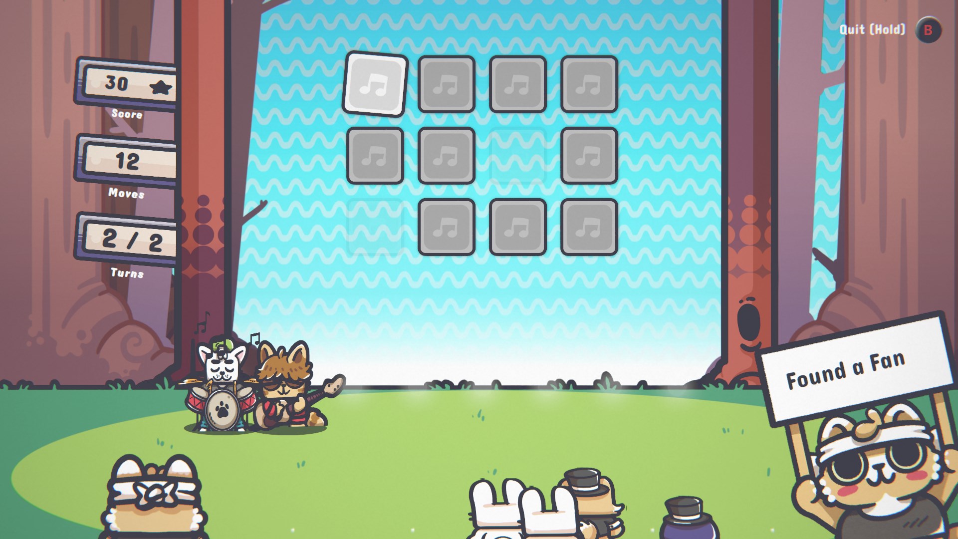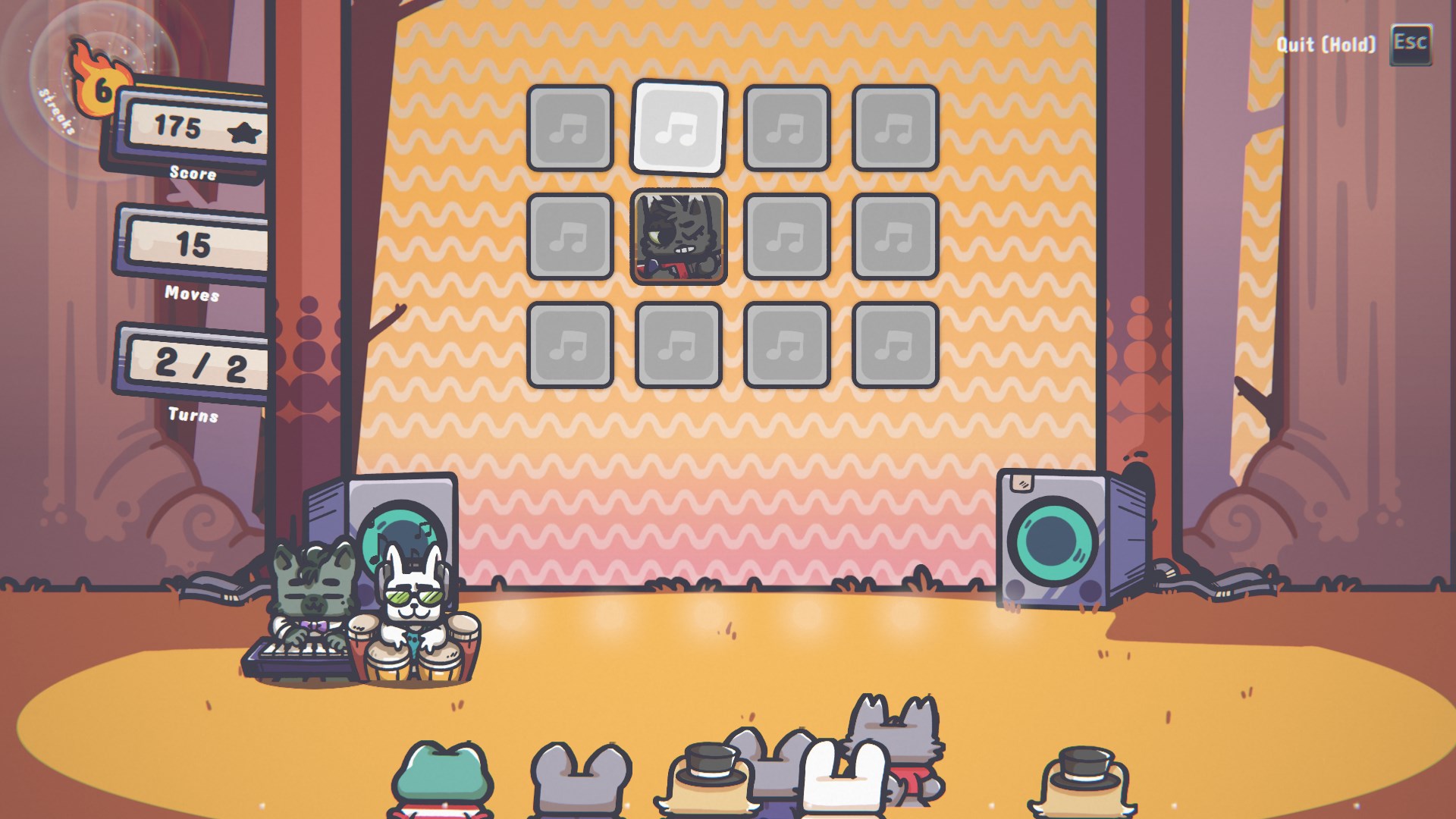 Every time you match a pair, a musician steps onto the stage and the soundtrack evolves — turning gameplay into music.