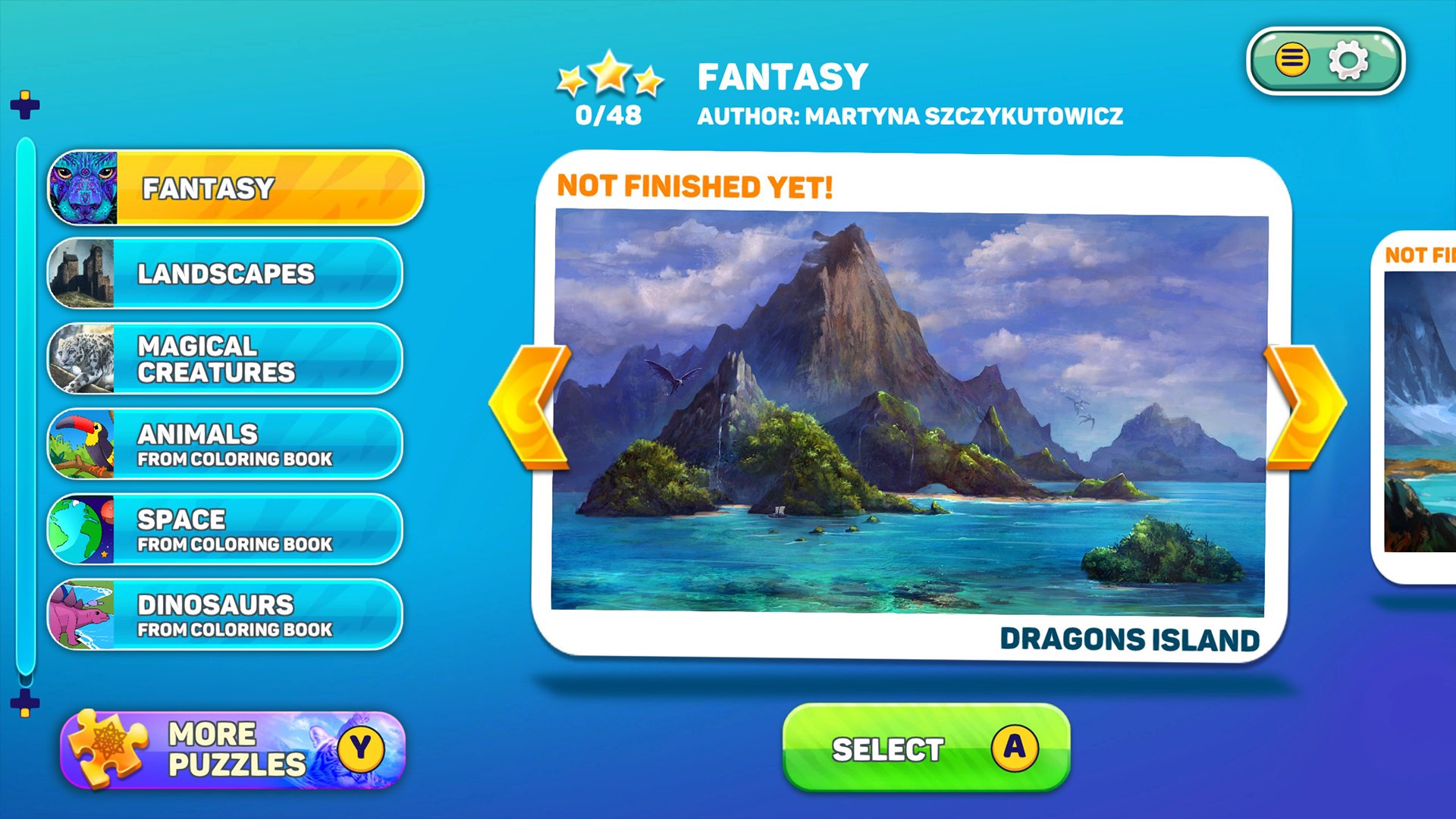 Puzzle book offers 35 different puzzles to solve, divided into themes - from fantasy to dinosaurs. Arts for this game were made by artist specialized in various styles. They are beautiful paintings of creatures and landscapes or simpler drawings for kids. There is something for everyone!