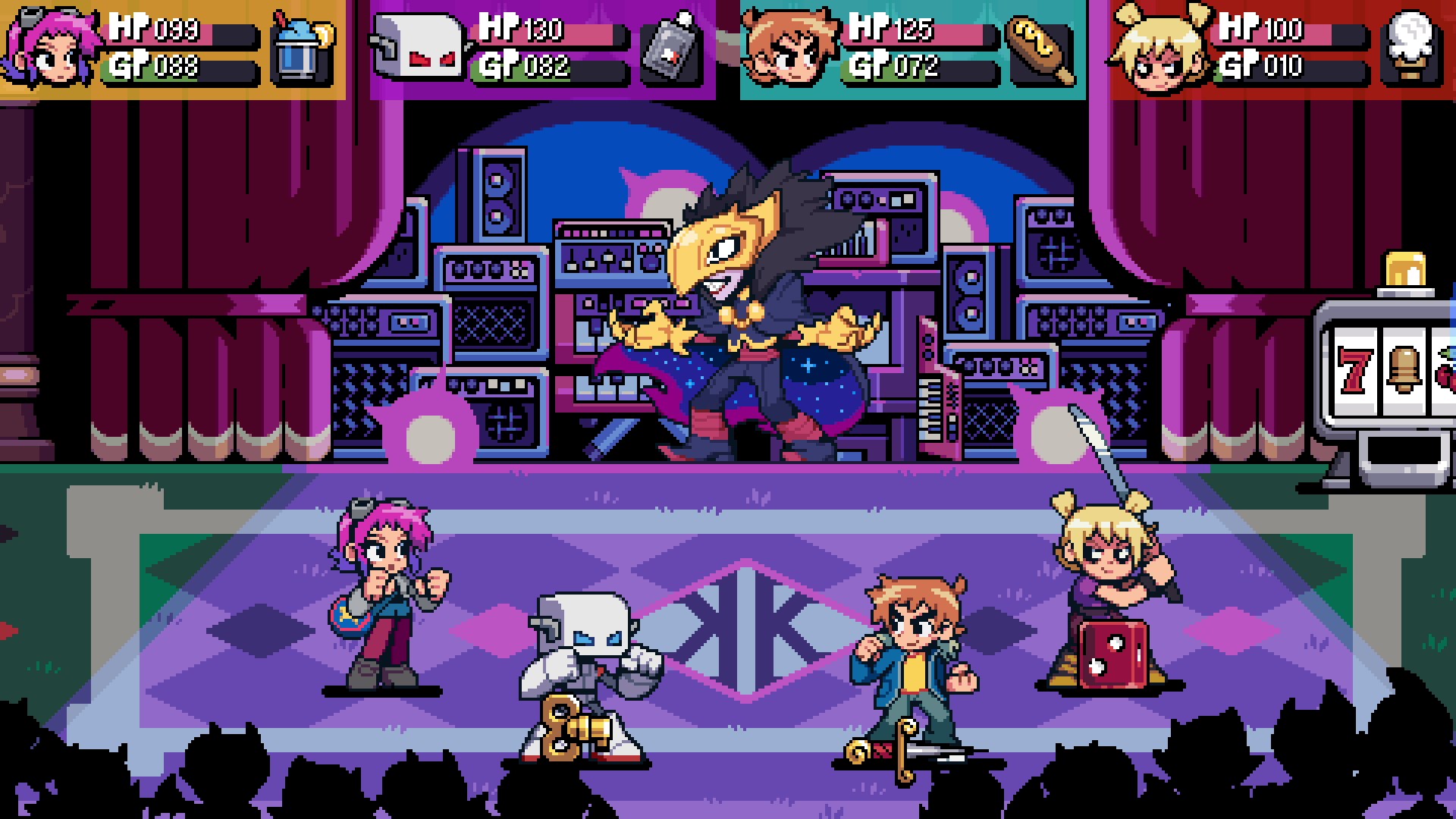 Step into the shoes of seven fan-favorite fighters — SCOTT PILGRIM, RAMONA FLOWERS, MATTHEW PATEL, GIDEON GRAVES, LUCAS LEE, ROXIE RICHTER and ROBOT-01 — each with their own distinct combat style.