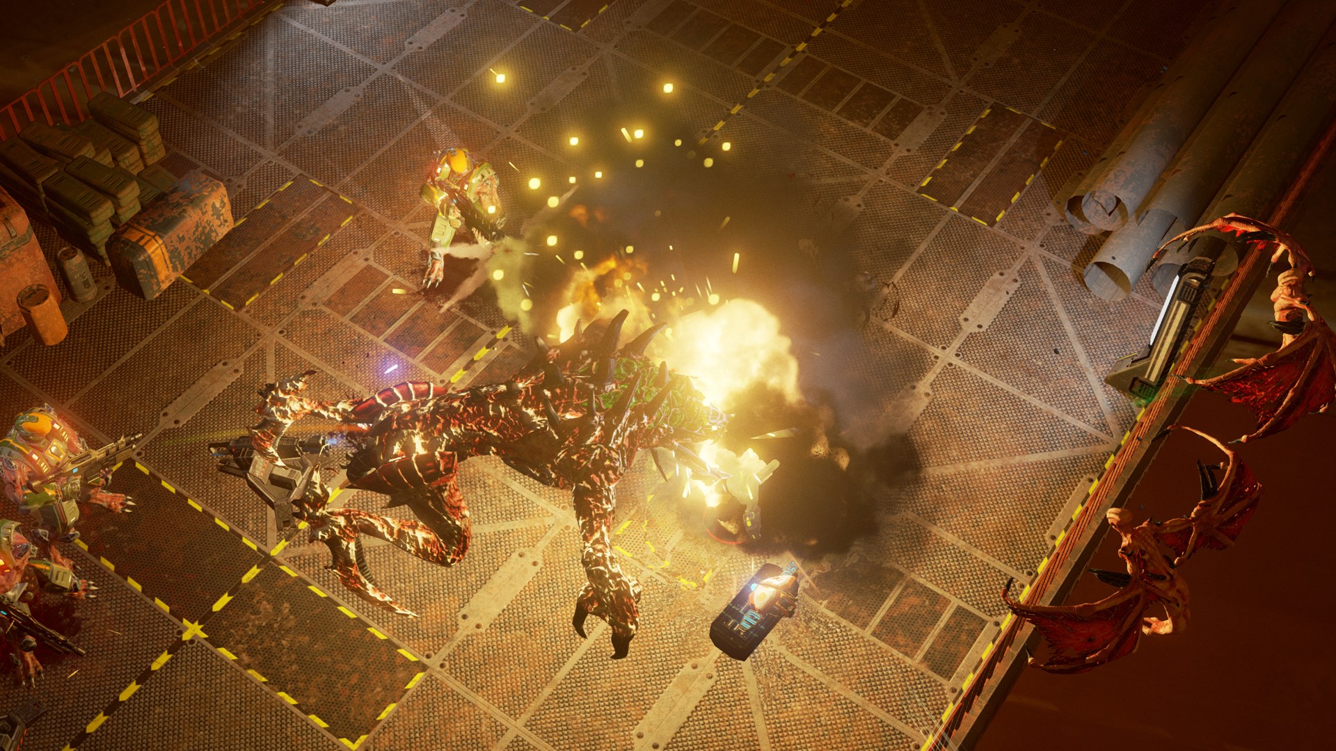 Use the friendly drone for game-changing abilities. Survive waves, upgrade, and uncover the mystery in this cooperative, action-packed 2-player twin-stick shooter experience.