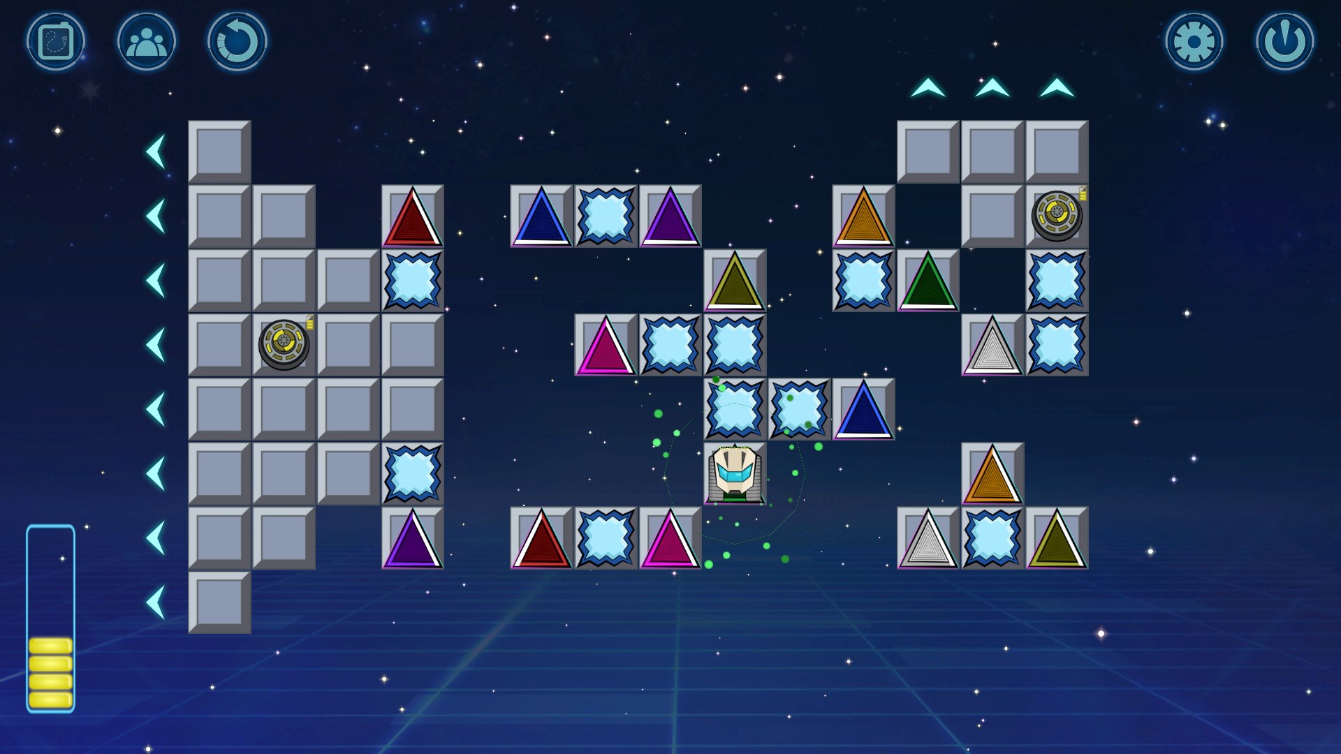 Space drone is a open world puzzle game with grid movement where you remotely control a drone to find and rescue your lost mates in space. Each move costs energy, so be careful not to go offline! Features: - Grid movement. - Explore 63 handcrafted levels to find the lost astronauts. - Different Endings. - Enjoy futuristic sci-fi music.