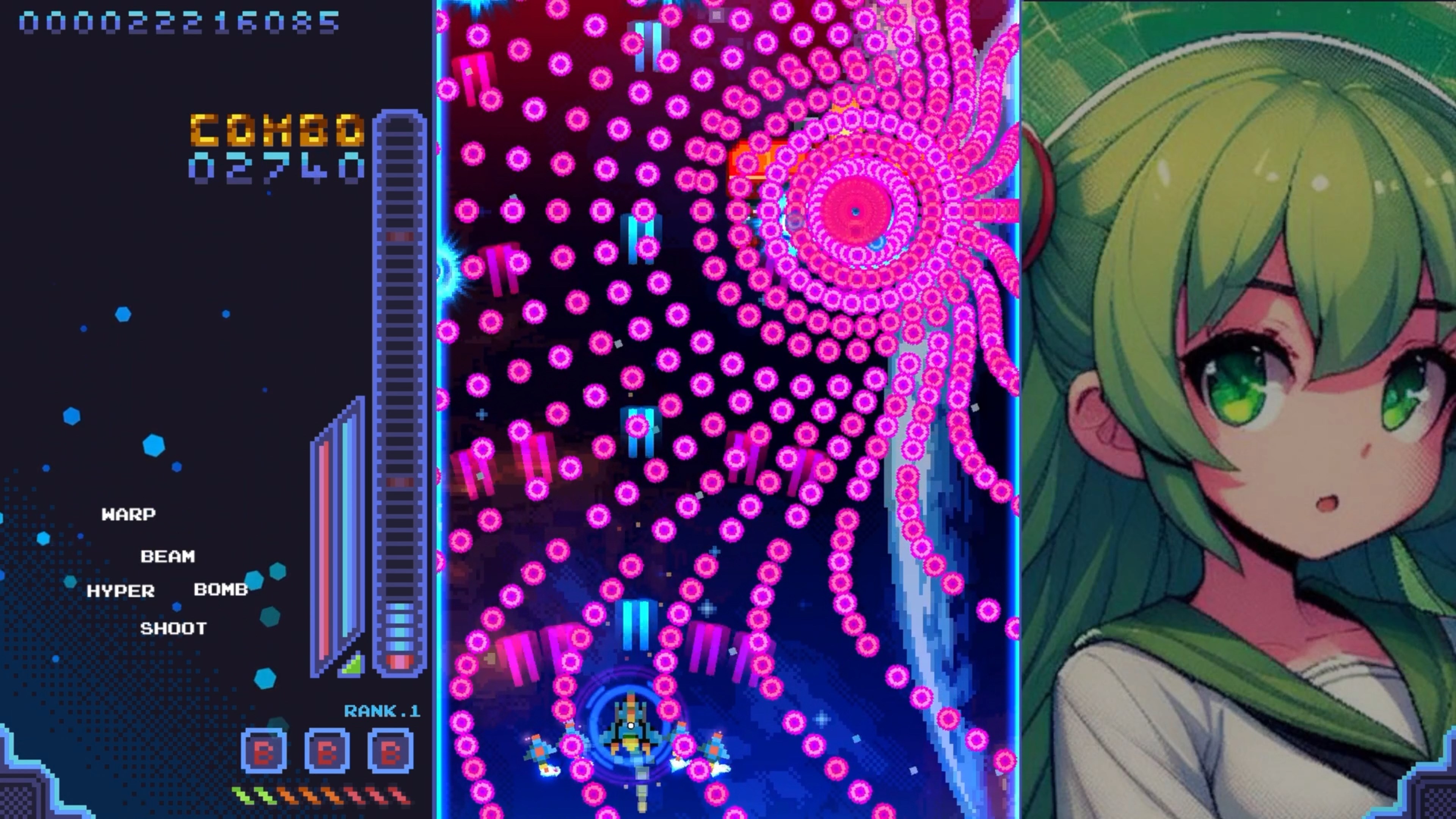 Blast swarms of enemies and charge your warp drives in retro shoot’em up style!