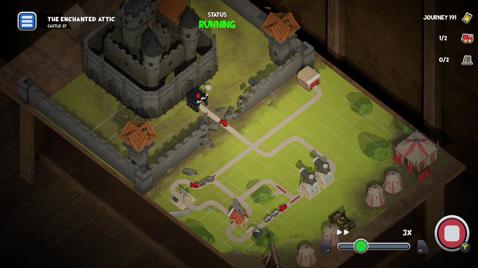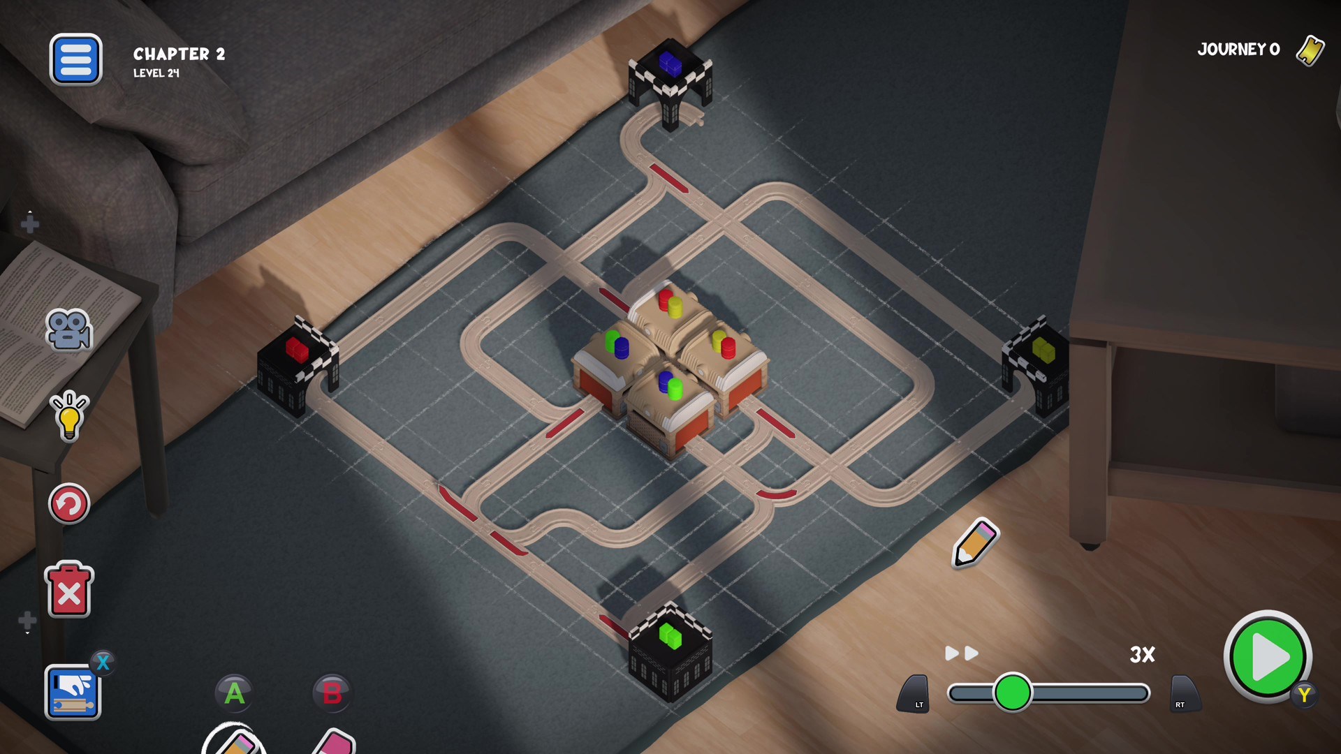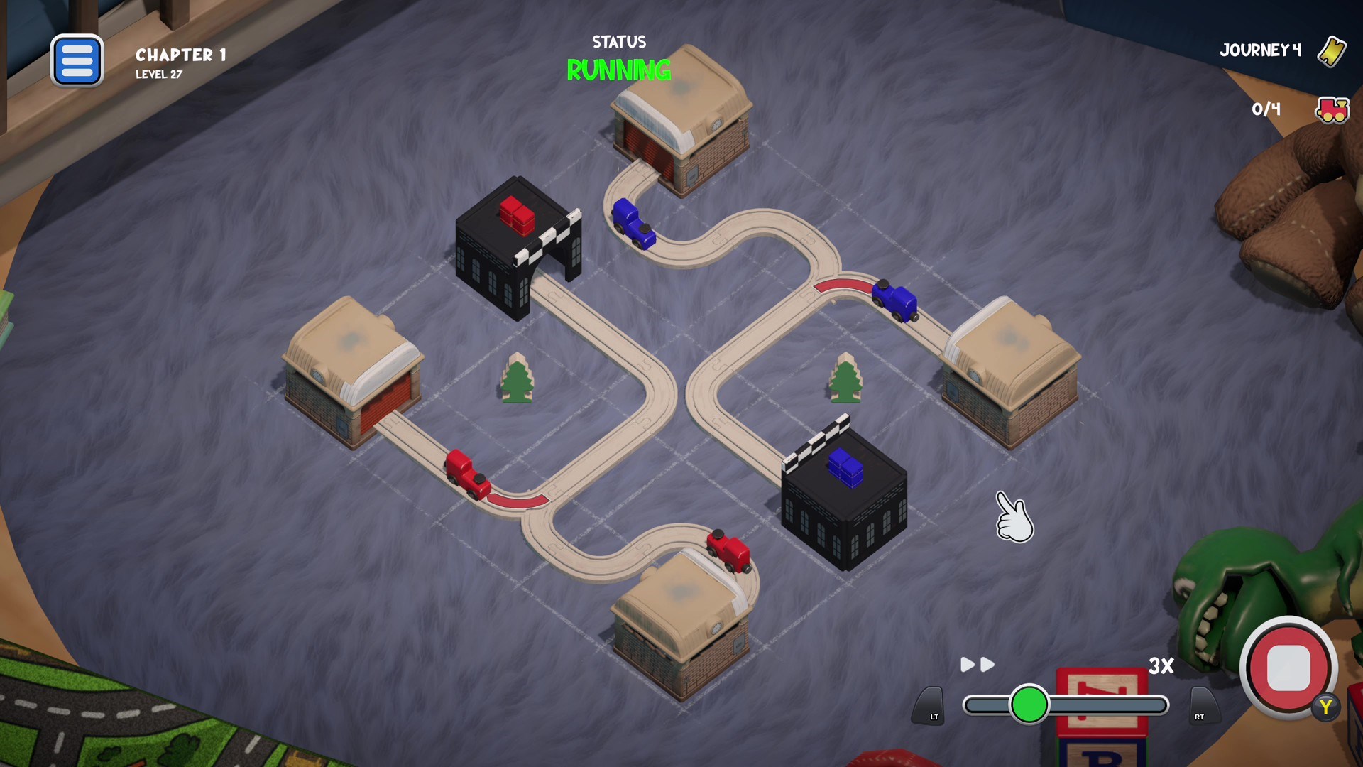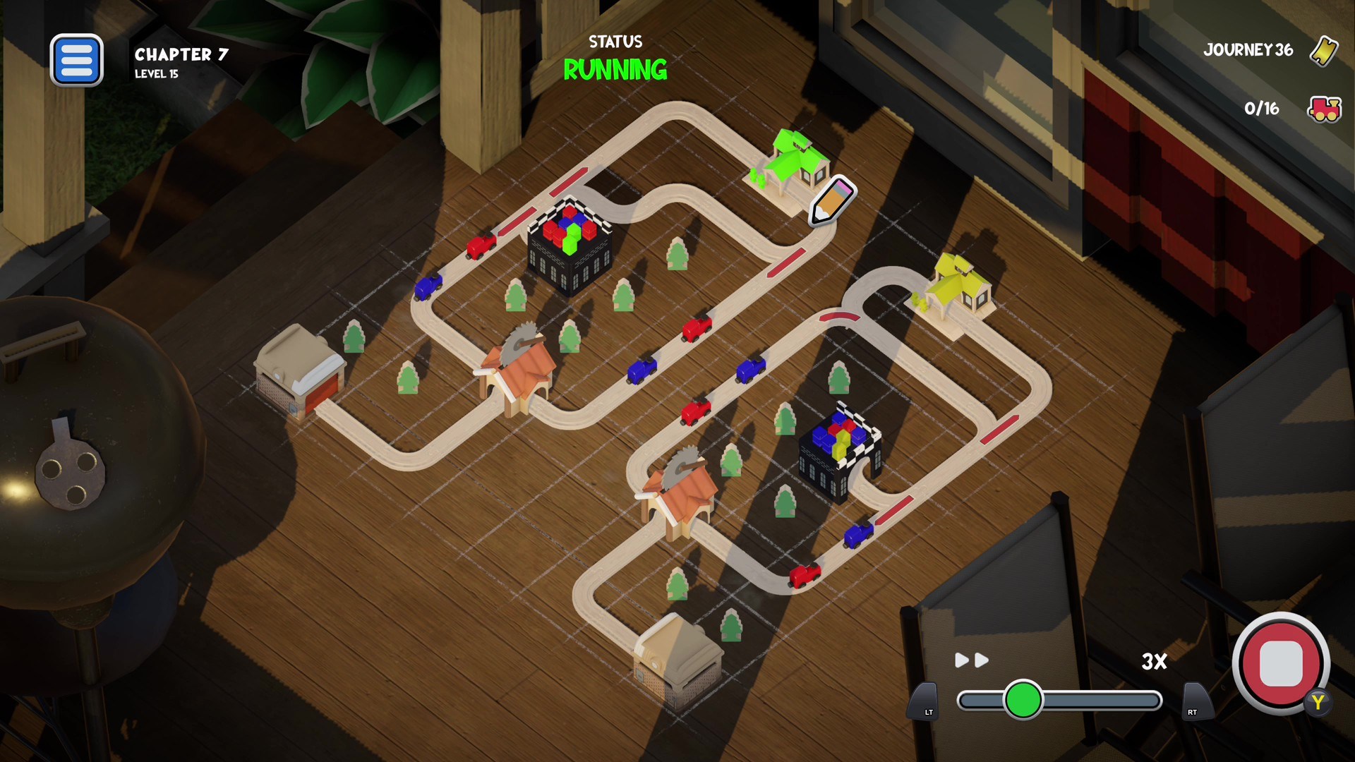 Experience a bit of that magic with Teeny Tiny Trains - Build tracks, flip switches, and dodge playful obstacles to guide your trains home.