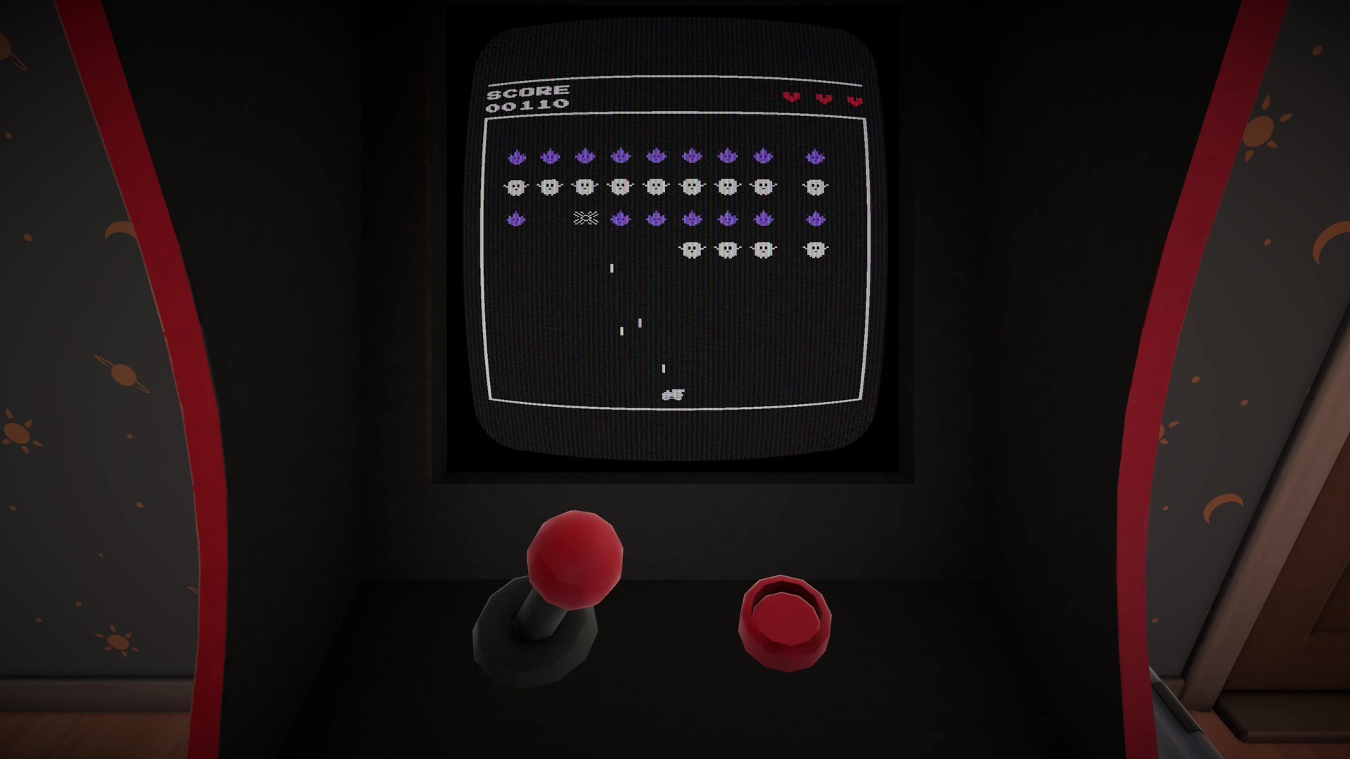 - A retro-style arcade cabinet in-game with train-themed mini-games