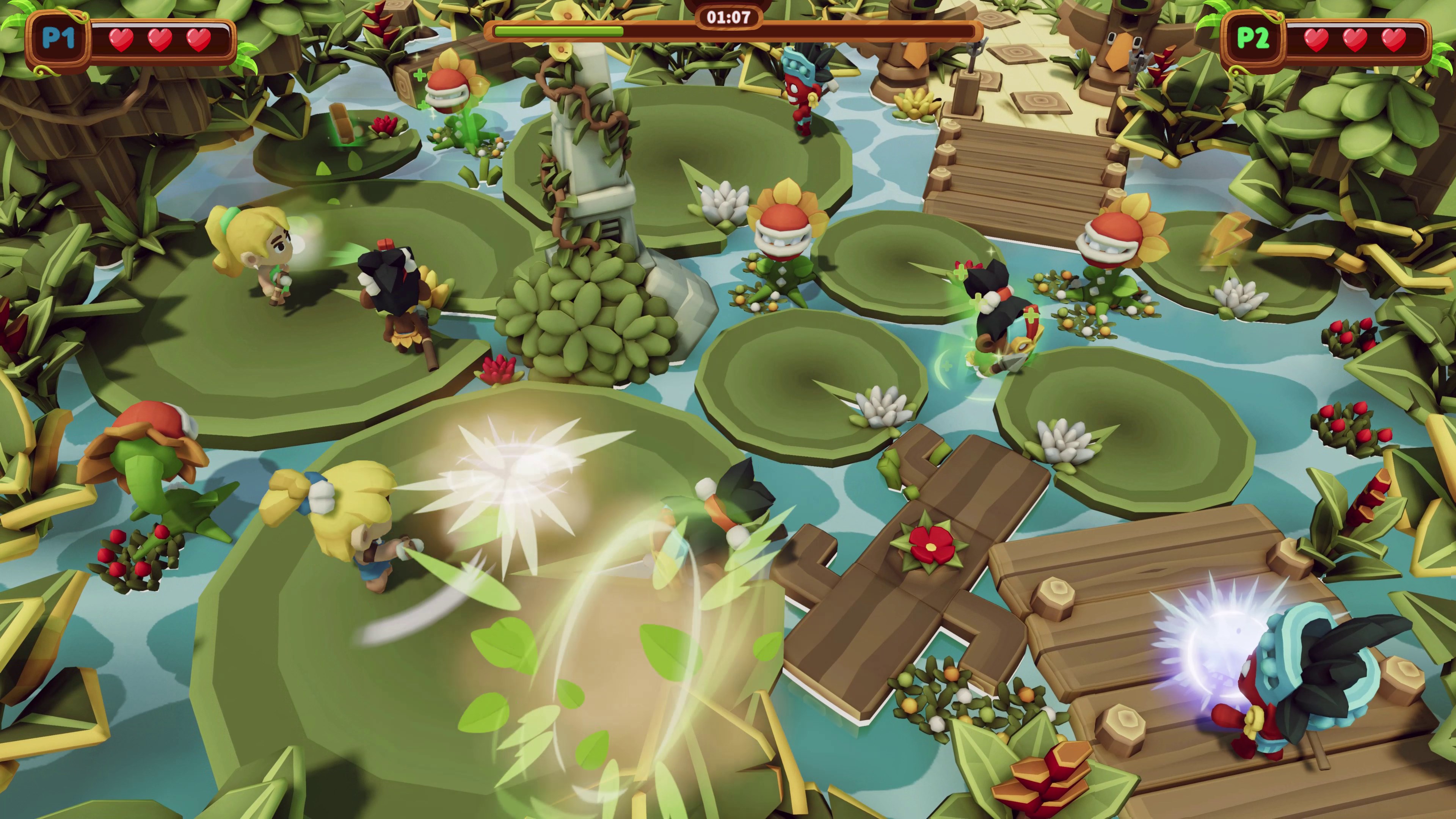 Set out on a thrilling adventure across untamed regions, dense jungles, cursed mines, and long-forgotten temples! Follow the twin heroes on their quest to save their abducted younger sister. The add-on unlocks the youngest sister as a playable character. Beneath her petite build lies a relentless fighting spirit. Quick on her feet, brave, and equipped with a one-of-a-kind weapon, she’s fully prepared to carve out her own destiny and leave a lasting mark on the story. Broaden the experience with the extra Challenge Mode and enter the Arena, a relentless battleground where never-ending enemy waves will push your abilities to the limit. Confront formidable opponents, refine your combat skills, and fight for glory as you aim to rise as arena legends. Take on the journey alone or join forces in 2-player local co-op and overcome every trial together.